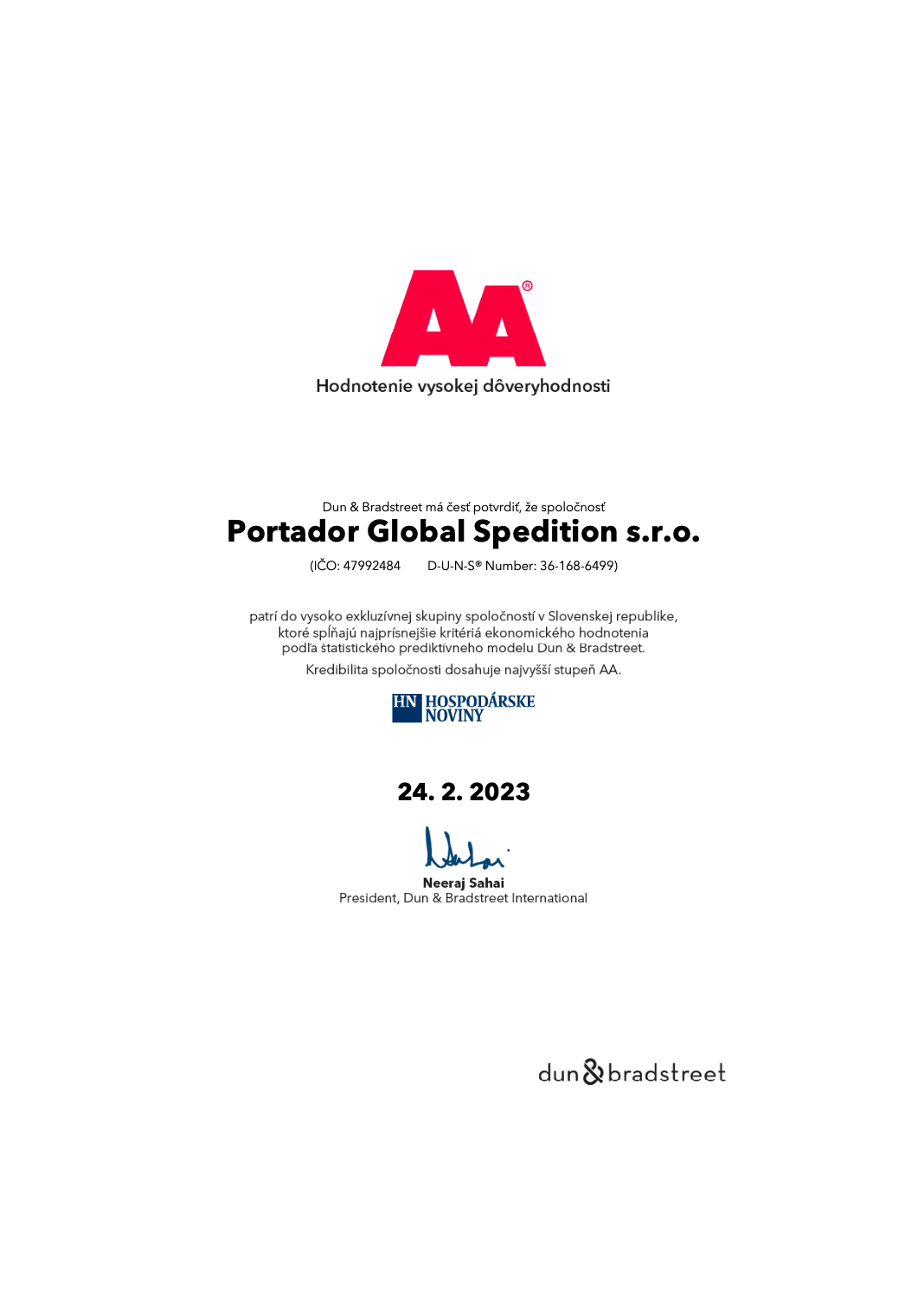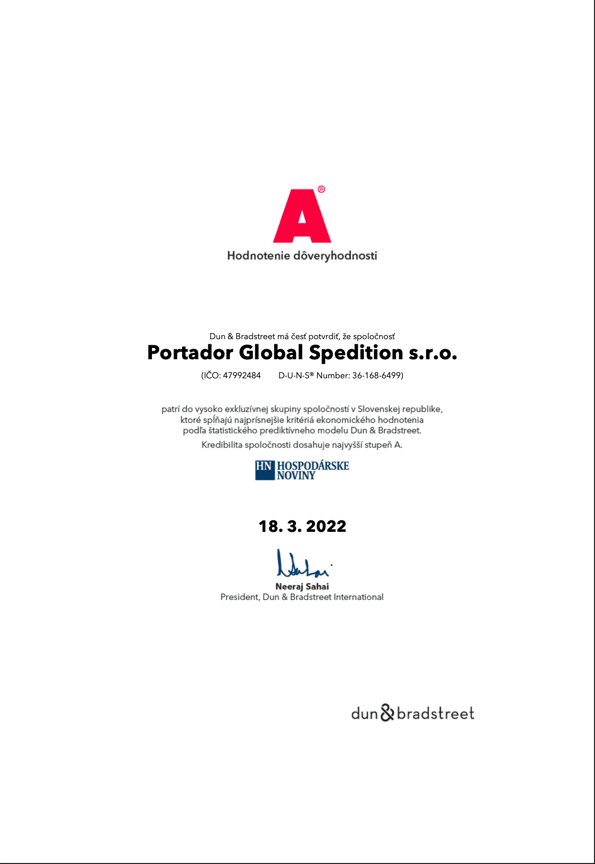 Jednotné osvedčenie o kredibilite a spoľahlivosti firmy