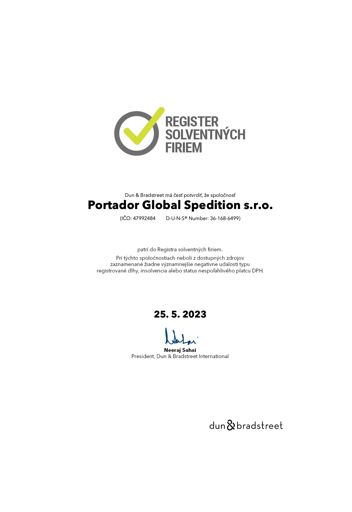 Osvedčenie o solventnosti spoločnosti za rok 2023